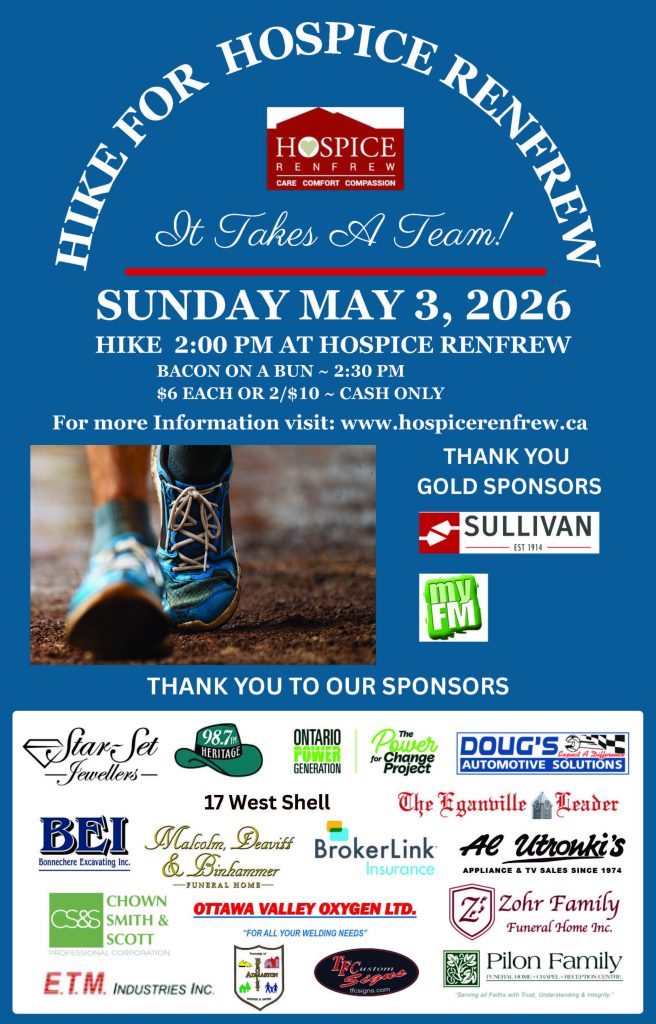 - Meter For Annual Hike For Hospice Renfrew Pledges – Goal $110,000 7%